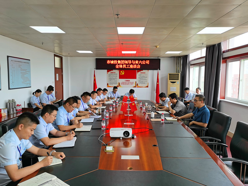 調(diào)研中,市城投集團主要領導與來六公司全體員工進行座談。
