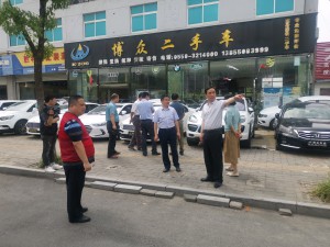 高潮一行沿途仔細查看道路兩側環境衛生、綠化養護、車輛停放以及商鋪“門前三包”等情況,重點對山水人家北門少數經營戶門前垃圾未及時清理,非機動車擺放雜亂及二手車交易市場車輛違停等問題進行現場調度。