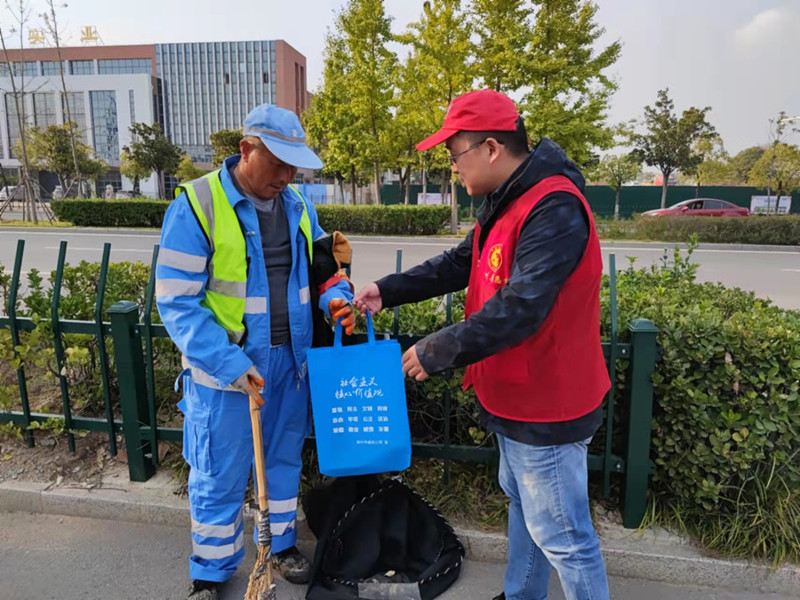 10月26日,市城投集團志愿者赴包保路段向奮戰(zhàn)在一線的環(huán)衛(wèi)工人送上節(jié)日問候和慰問品。