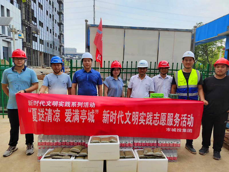 7月22日,市城投集團公司組織志愿者前往城投大廈項目工地開展“夏送清涼 愛滿亭城”活動。